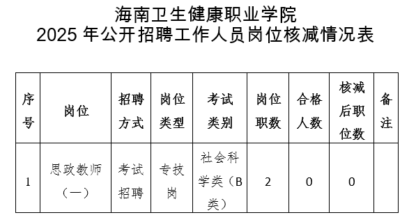 附件:海南卫生健康职业学院2025年公开招聘工作人员岗位核减情况表