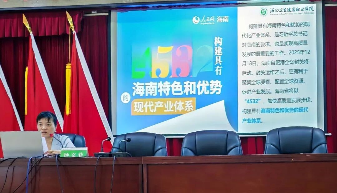 谈及“海南自由贸易港的道路探索”,她的话语仿佛打开了一幅时光卷轴。从海南解放初期的边陲海岛,到逐步成为对外开放的“试验田”,再到如今自贸港建设的火热场景,一个个关键节点、一组组亮眼数据,让师生直观感受到这片土地的蜕变与成长。当讲到“一本三基四梁八柱”战略框架时,她没有停留于抽象概念,而是结合海南产业发展、民生改善的实际案例,剖析这一顶层设计如何像“四梁八柱”般撑起自贸港建设的骨架,让师生深刻理解战略背后的深远意义,信心在倾听中悄然筑牢。