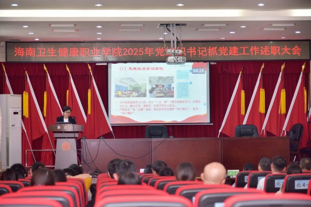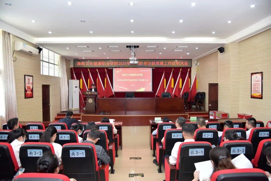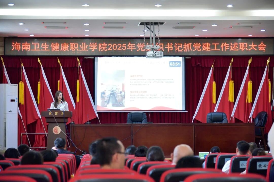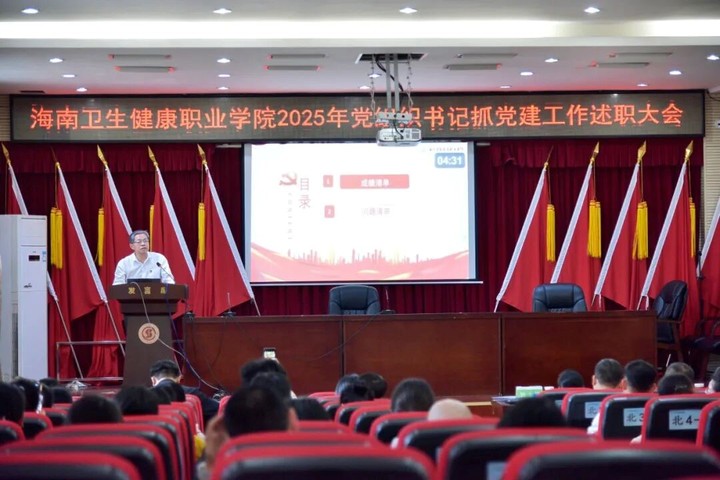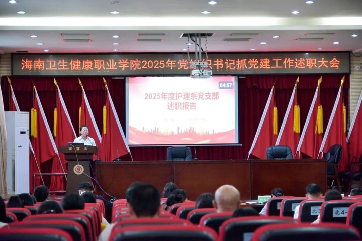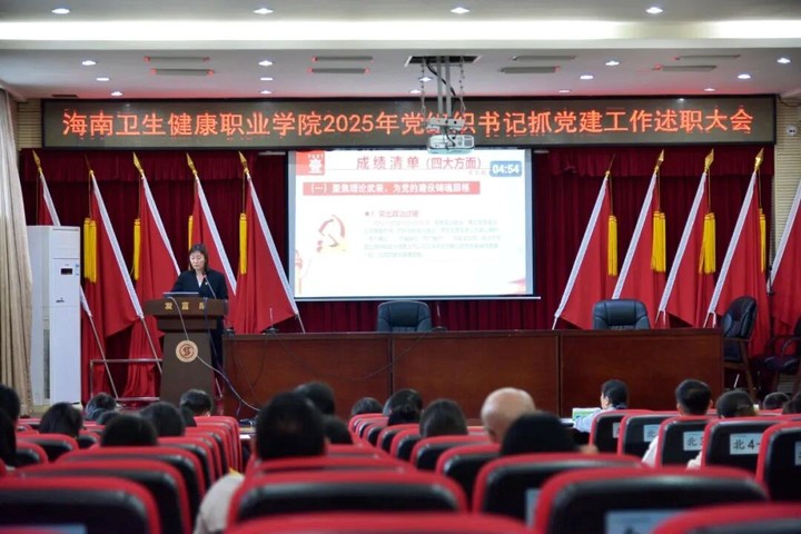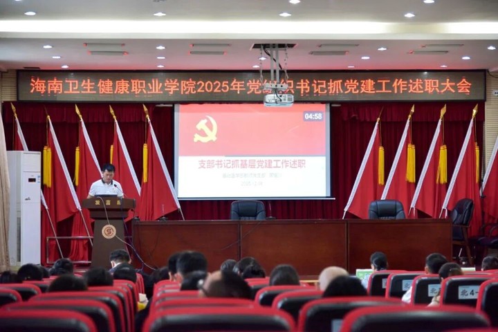 12月8日下午,海南卫生健康职业学院在107学术报告厅召开2025年度党组织书记抓党建工作述职评议大会。全体校领导,原任及现任基层党组织书记、支委,相关职能部门负责人,党员代表等参加会议。