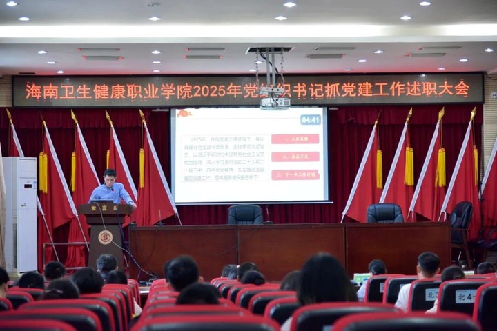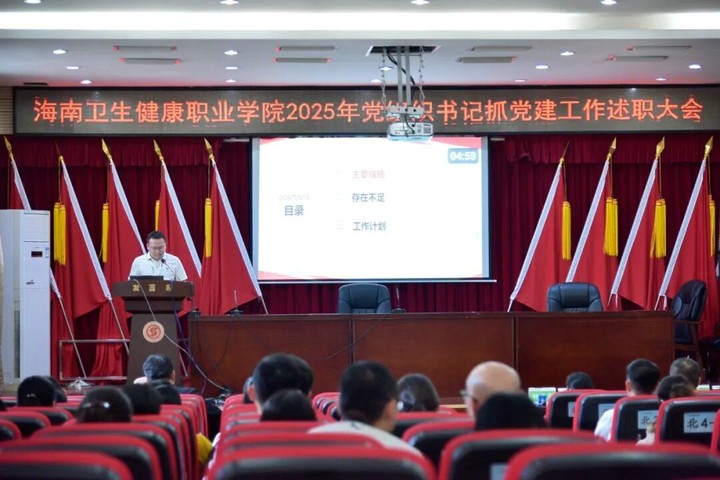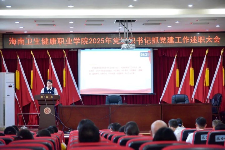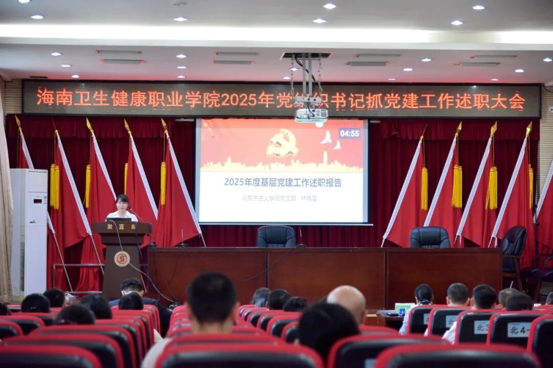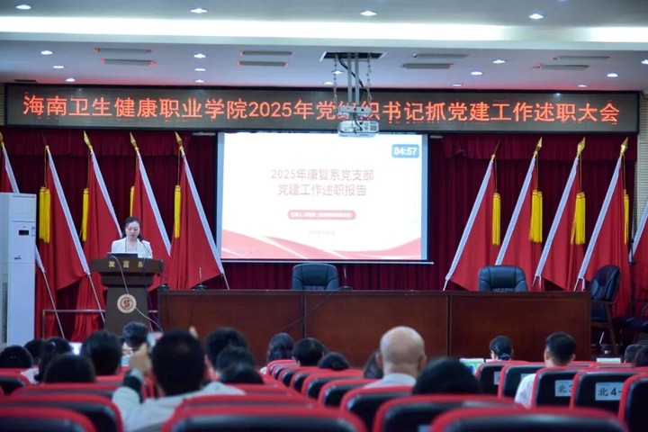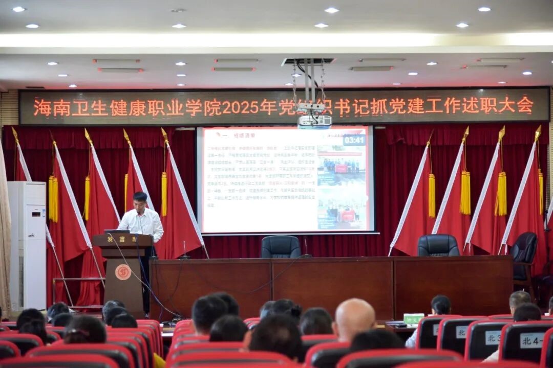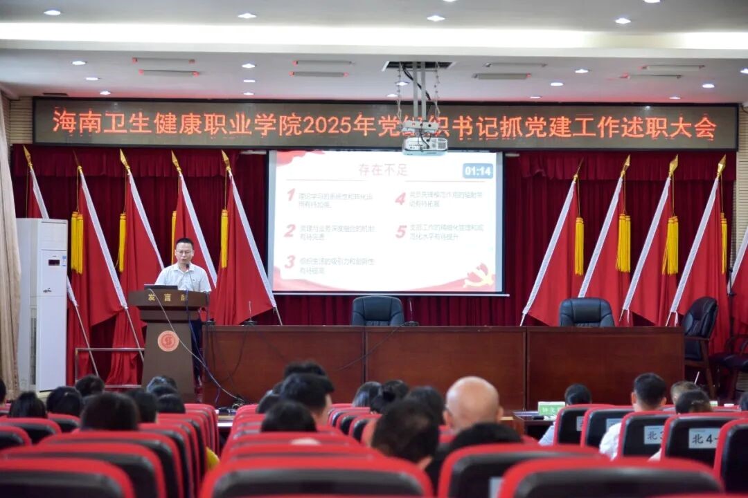 12月8日下午,海南卫生健康职业学院在107学术报告厅召开2025年度党组织书记抓党建工作述职评议大会。全体校领导,原任及现任基层党组织书记、支委,相关职能部门负责人,党员代表等参加会议。