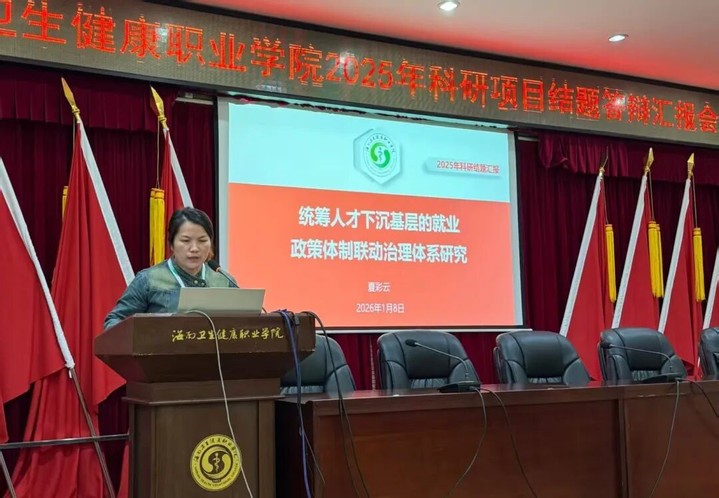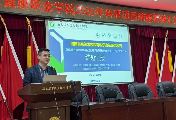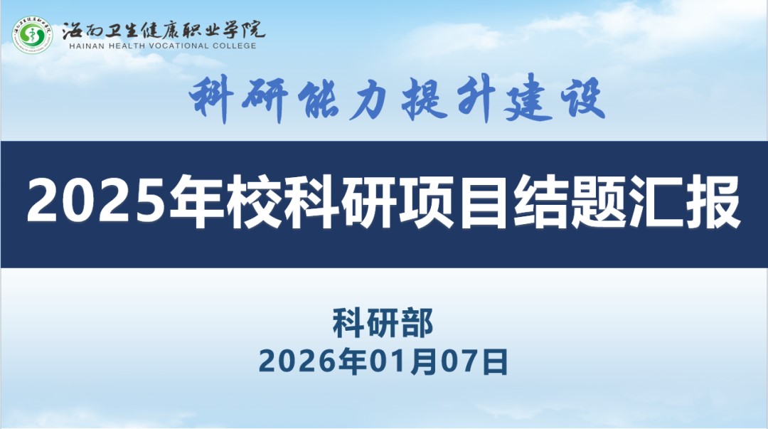 值“十四五”收官之年,为进一步总结我校教师在卫生健康职业教育领域的深耕成果,彰显了科研创新对人才培养与行业发展的双重赋能价值,1月8日下午,海南卫生健康职业学院2025年科研项目结题汇报会在我校护理实训楼107学术报告厅举行。
