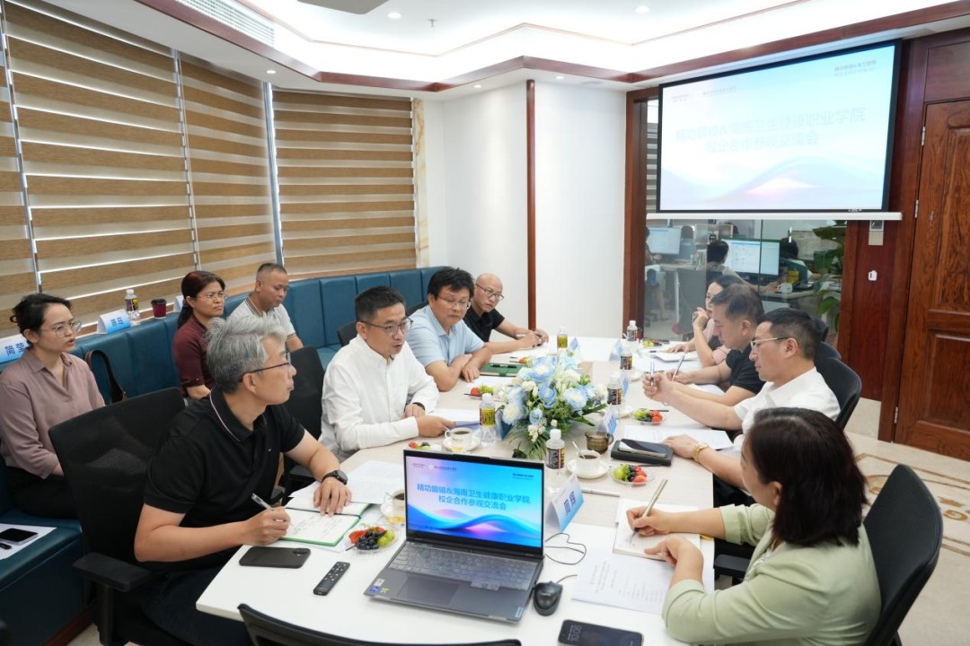 为深入贯彻落实《教育部关于深化职业教育教学关键要素改革的意见》中关于“对接产业发展、优化专业结构、强化实践教学”等要求,推动专业设置与产业需求同频共振,3月27日,海南卫生健康职业学院校长谢毅强、副校长高胜利带队赴海南精功眼镜连锁有限公司,开启新学期校企合作首站交流。精功眼镜董事长陶秀青及企业相关负责人热情接待,双方就眼视光技术专业人才培养、产教融合深化发展等议题展开深度交流,共同研讨产教融合新路径。